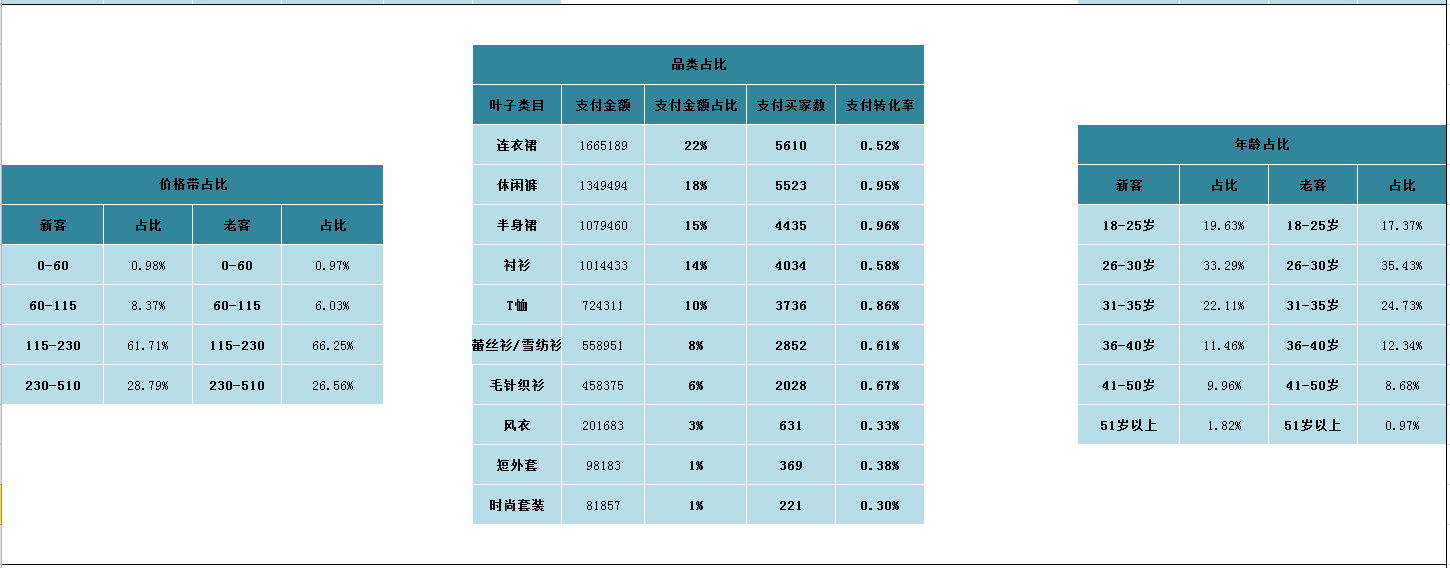 说明这是一家女性为主,年龄26-35岁,已婚已孕,有知识文化,白领,分布在一二线城市居多,并且,喜欢买新款,喜欢搭配,对这家店铺有比较高的认知,粘性比较强。