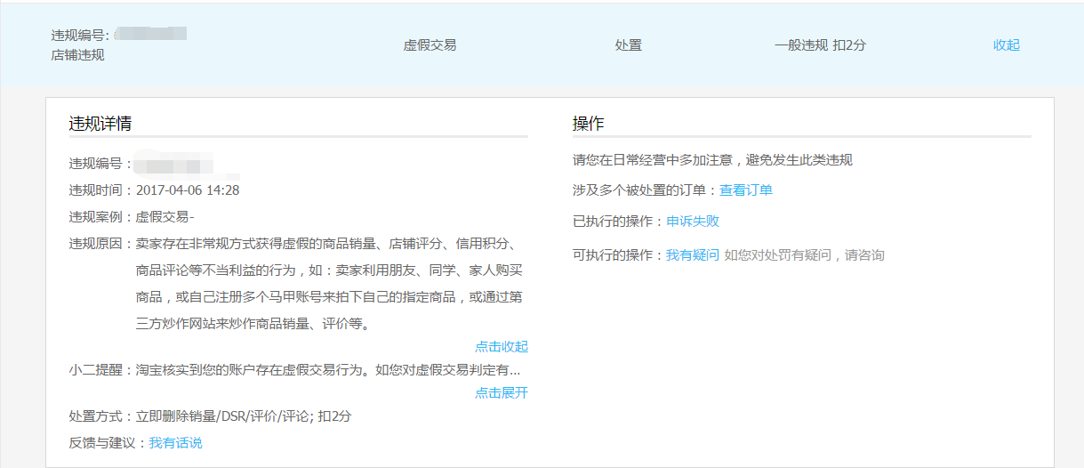 d. 滥发信息情节特别严重:6分/次,删除商品、下架/删除店铺内所有商品、店铺屏蔽、交易账期延长、限制发布商品、限制商品发布数量、店铺监管等措施