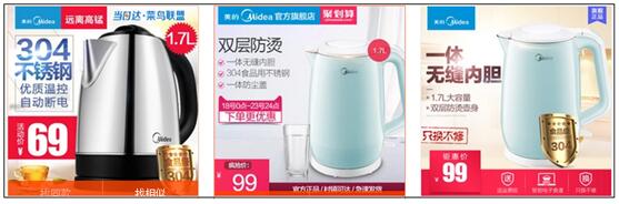然后我们假设,消费者还真的在搜索:“美的电热水壶”这个关键词的时候找到了你,然后结果会怎样呢?
