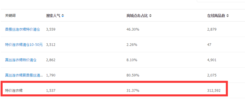 看到图上的红色字了吗?只描红了‘连衣裙’这个词根 ,而‘天天特价’并没有被描红,这说明了什么?没错这说明了系统在做搜索条件的时候并没有考虑你的天天特价这个词根。并且如果你使用了这个词,你还会被系统检测出来强制下架!可谓是吃力不讨好!
