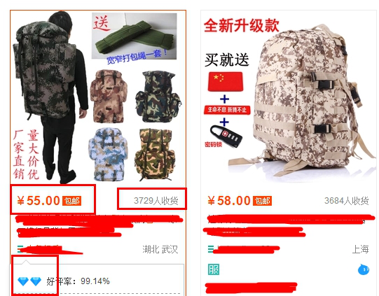 为什么要找价格偏高的产品呢?像市场上那些9.9包邮的产品,讲究款式吗?不讲究吧,买这样产品的买家看重的只是价格,不会看款式的,只要是他需要的,而且价格便宜,他就会购买。如果你买100块钱的登山包和买9.9的登山包,你在产品的选择上哪一个你更偏向于款式的选择,道理很简单。